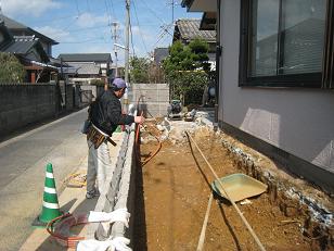 その③、北九州市小倉北区下富野 山崎さま邸 玄関前及び塀改修工事、7日目。