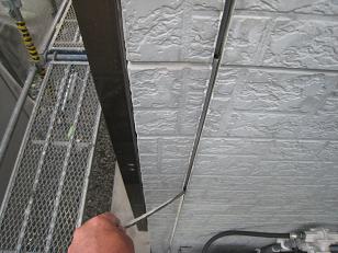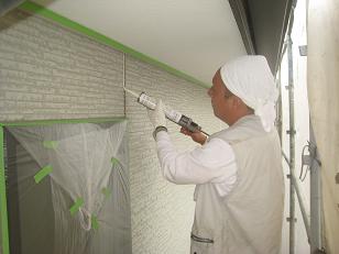 こちらのコーキングは劣化がはげしかったので、古いコーキングを剥ぎ取っています。