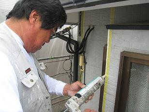 こちらは、山之内リーダーと近藤さん、平田さんでコーキングの打ち直し、および打ち増し作業をしました。